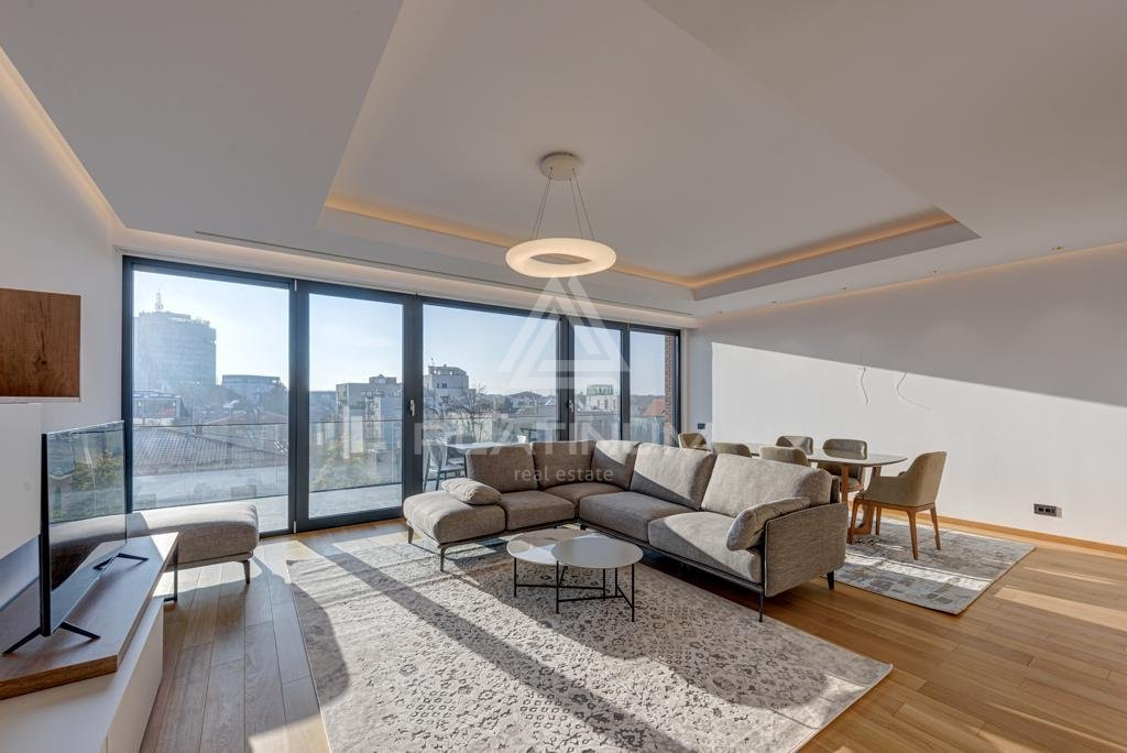 We are pleased to present a sophisticated 2-bedroom apartment located in the prestigious Primaverii neighborhood, adjacent to the serene Bordei Park. Situated on the top floor, this property offers panoramic city views and a refined living experience.