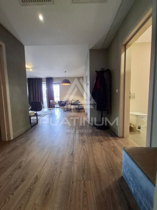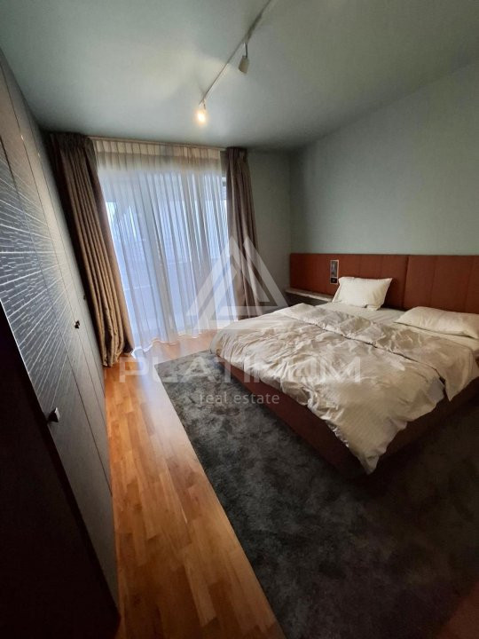 Dormitorul matrimonial beneficiază de baie proprie, asigurând intimitate și confort, în timp ce al doilea dormitor are acces la cea de-a doua baie, care deservește și zona de zi. Spațiile sunt bine proporționate, cu lumină naturală din abundență și finisaje de calitate.