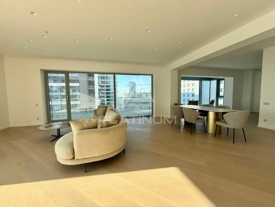 The property is situated on the 9th floor of an 11-story building and has a usable area of 171 sqm. It benefits from city views and plenty of natural light due to large glazed surfaces.