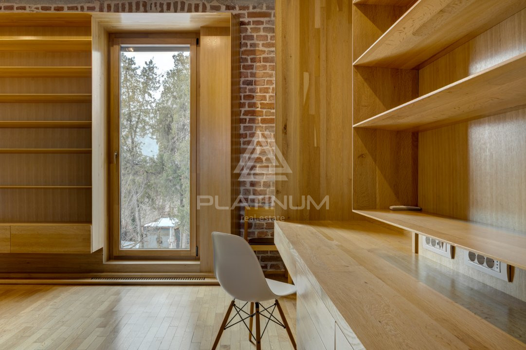 Tavanele înalte și suprafețele vitrate generoase creează o atmosferă aerisită și elegantă, păstrând farmecul arhitecturii de epocă.
